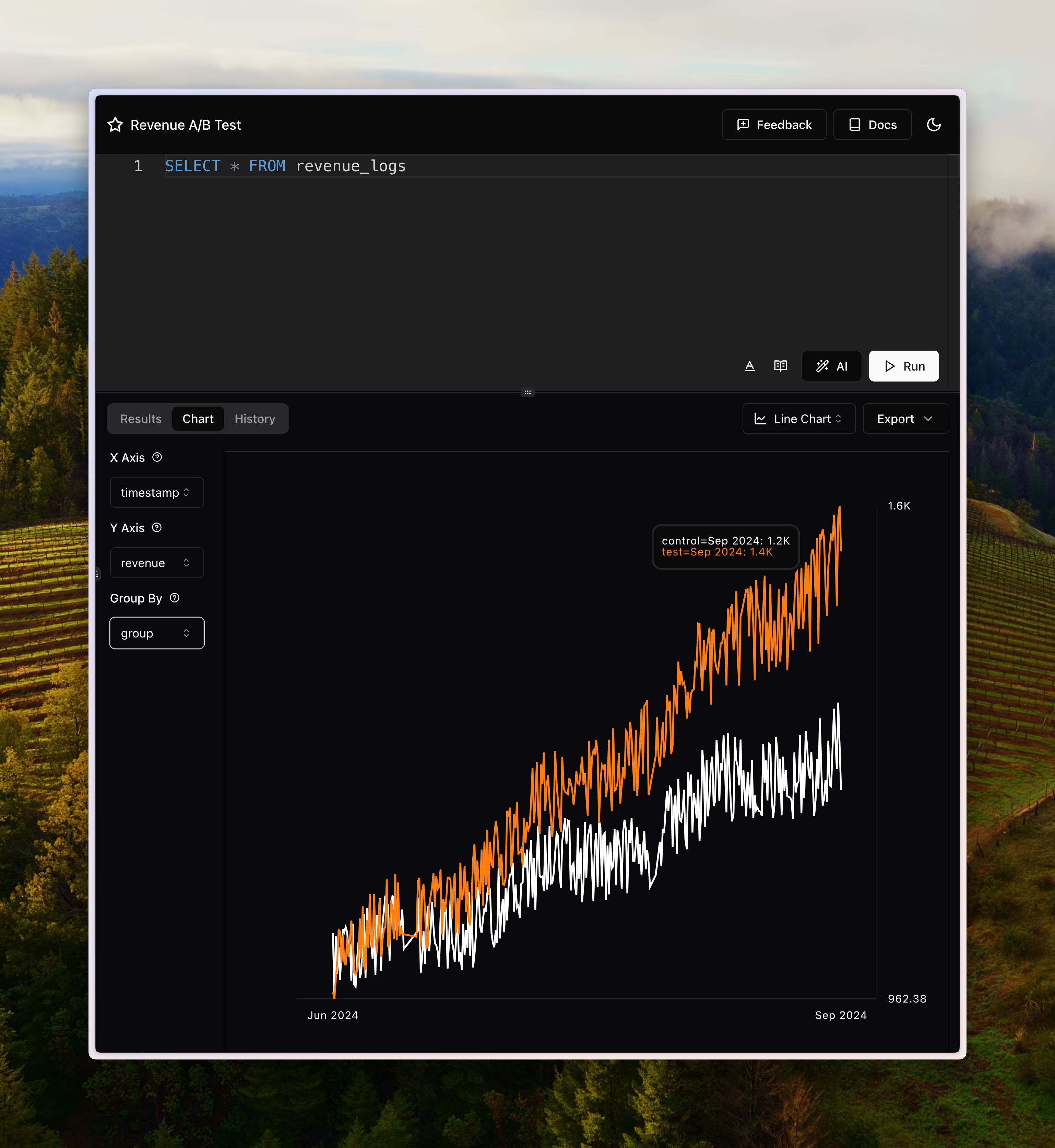 You can integrate telemetry into your product or internal dashboards by querying the data using SQL through our query API.